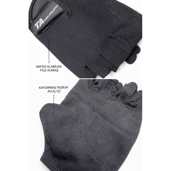 TORQ ATHLETICHS Antrenman Eldiveni, yoğun spor ve fitness antrenmanları için özel olarak tasarlanmıştır. El üstünde kullanılan nefes alabilen file kumaş, terlemeyi azaltarak uzun süreli konfor sağlarken; avuç içindeki ultra dayanıklı nubuk kumaş, güçlü tutuş ve yüksek aşınma direnci sunar. Ağırlık çalışmaları, fitness ve fonksiyonel antrenmanlar için birebir uyum sağlar.